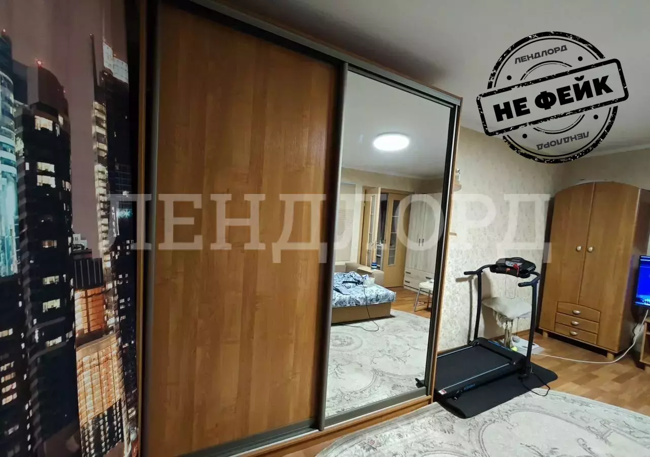 В комнате установлен вместительный шкаф-купе и удобный диван. Санузел совмещенный, оформлен плиткой, оснащён ванной и стиральной машиной. На кухне есть б/у гарнитур, небольшой диван, стол и 4 стула.