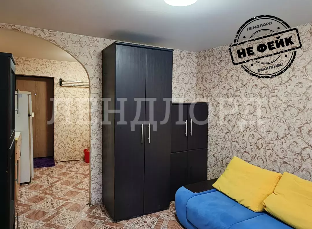 комната разделена на жилую зону и кухню.
