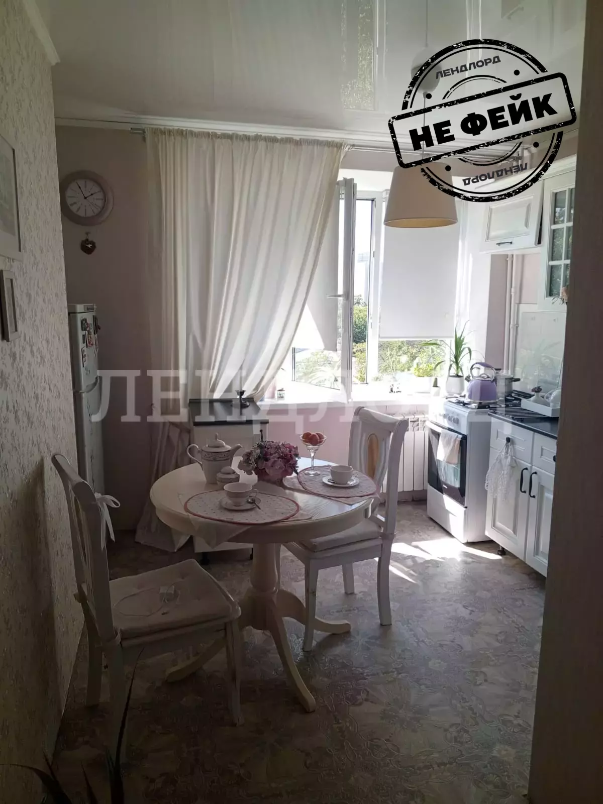 — просторная светлая кухня (практически кухня-гостиная) с удобной нишей для холодильника, над ним — зона для хранения