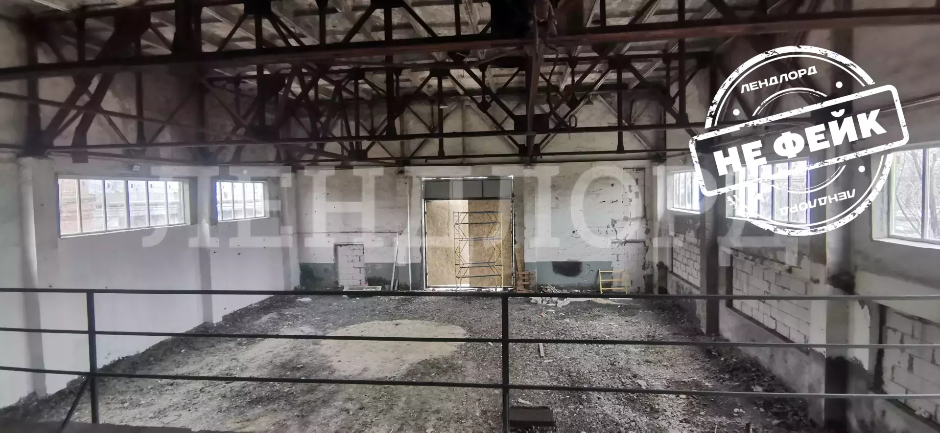 - общая площадью 1300 кв.м., в т.ч. 900 кв.м. - 1 этаж и 400 антресоль), высота потолков 8м,
